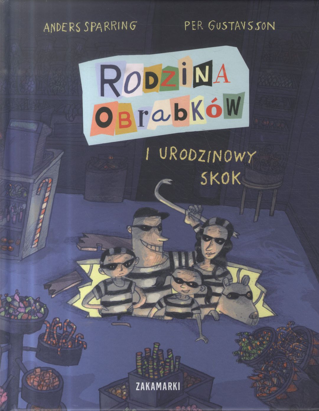 Członkowie Rodziny Obrabków bardzo lubią zabierać cudze rzeczy. Po prostu nie potrafią się powstrzymać. W każdym razie tata Zbiro, mama Cela i Elka. Za to Ture lubi robić tylko to, co dozwolone, i nie bierze niczego bez płacenia. Rodzice i siostra trochę się o niego martwią. Co z tego chłopaka wyrośnie?Zbliżają się urodziny Turego. Ture ma tylko jedno życzenie. Chciałby dostać wielkiego lizaka w paski, tego z wystawy sklepu ze słodyczami. Czy Obrabkom uda się spełnić życzenie Turego i zdobyć lizaka? Czas goni, a wścibski sąsiad Paul Icjant już węszy pod ich domem.Oto pierwsza część nowej Zakamarkowej serii dla początkujących czytelników oraz do głośnego czytania. Gwarantujemy dużo śmiechu!